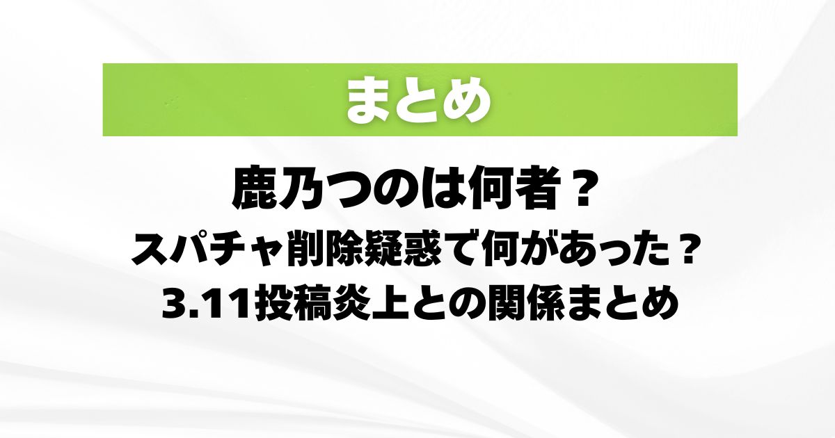 ここでは、鹿乃つのさんは何者なのか、今回何があったのか3.11投稿とのつながりが見えるように整理していきます。